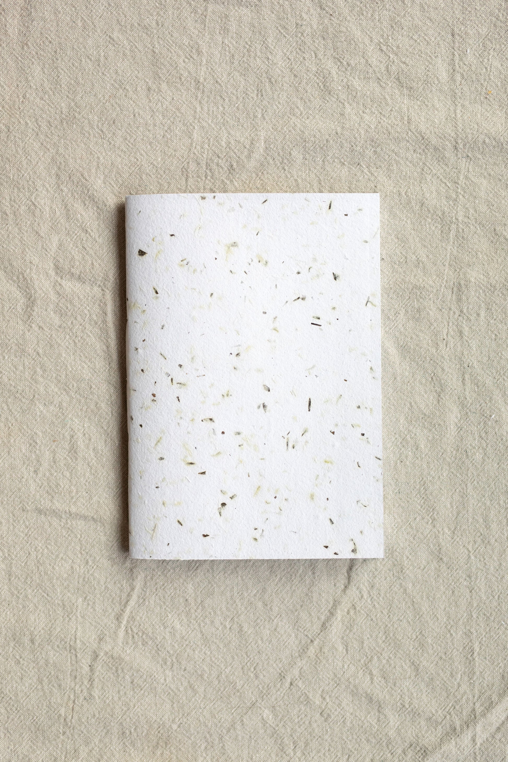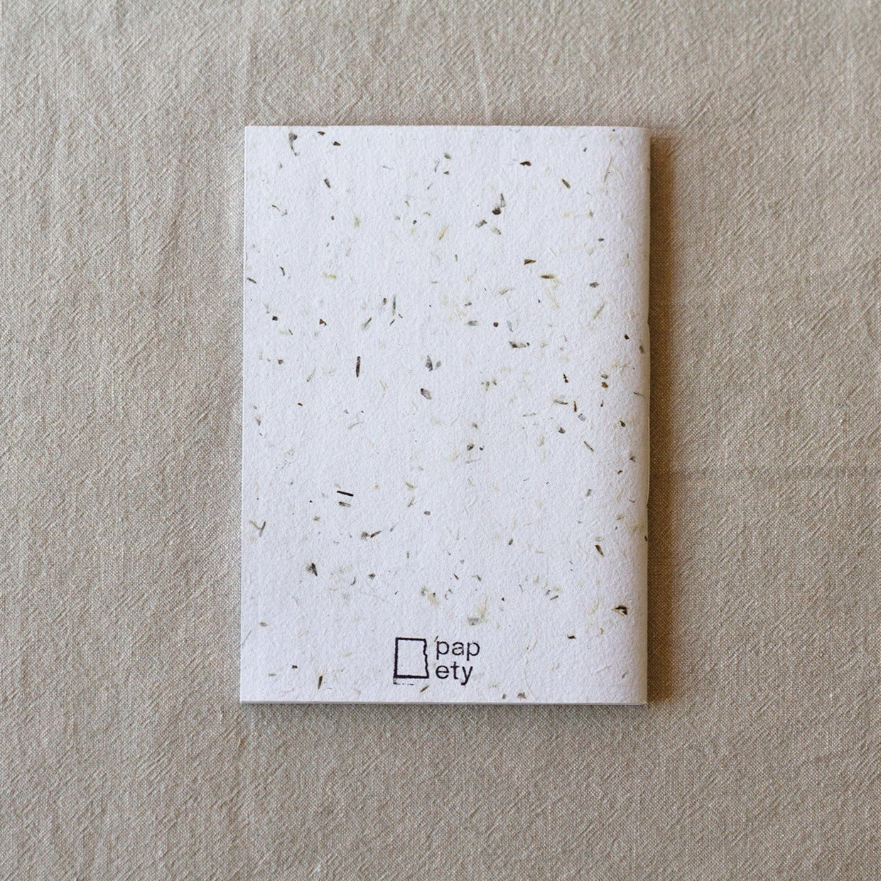 Borsikafűvel szórt borítóval ellátott, 16 újrahasznosított lapból álló, B6-os méretű (12,5x17,6 cm) jegyzetfüzet.