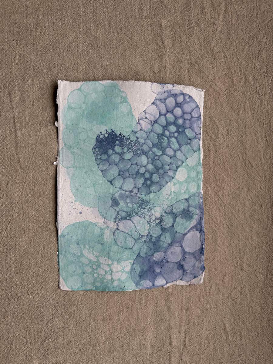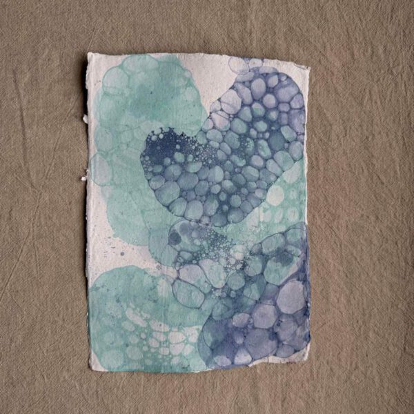 Apró buboréknyomokkal tarkított, játékos textúra, amely a kézi merítés könnyedségét és a véletlen szépségét hordozza magában. A buborékos felület minden lapon más mintázatot rajzol, így a papírok élőek, mozgalmasak és igazán egyediek.