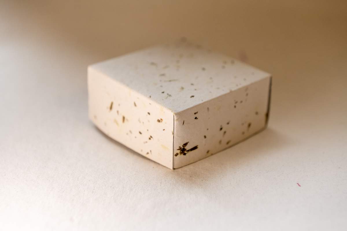 Az egyszerű textúrás papírdoboz borítója finoman tagolt, karakteres felületet kap, ahol a tapintás éppolyan fontos élmény, mint a látvány. A kézi készítésnek köszönhetően a textúra minden darabon kissé másként jelenik meg, így nincs két teljesen egyforma doboz.