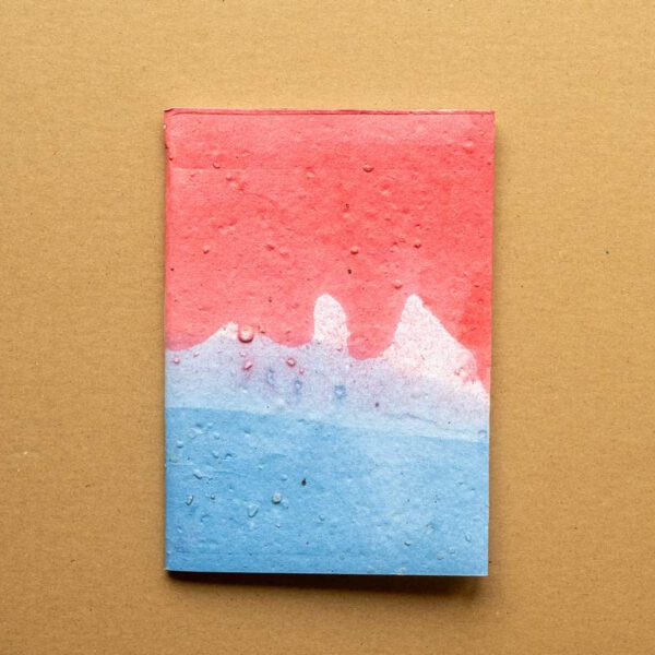 A borító erős, karakteres felületet ad, ahol a tapintás is része az élménynek. A füzet könnyű, hajlékony, mégis tartós, kézzel készül újrahasznosított papírból, ezért jól használható mindennap.