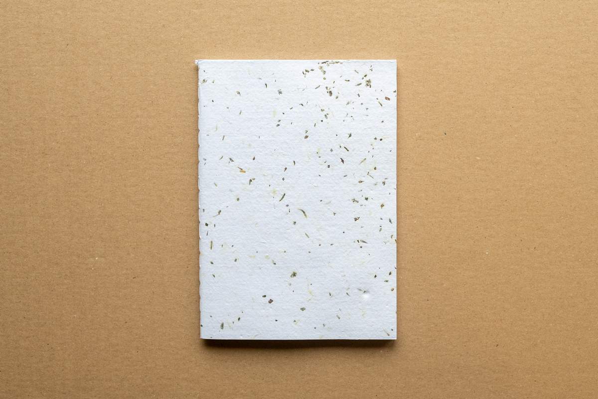 A fűszeres textúrás fűzött füzet borítójába valódi természetes elemek kerülnek: szemcsék, fűszerek, növényi darabkák. A kézi merítés során ezek szabadon rendeződnek el, így nincs két egyforma füzet.