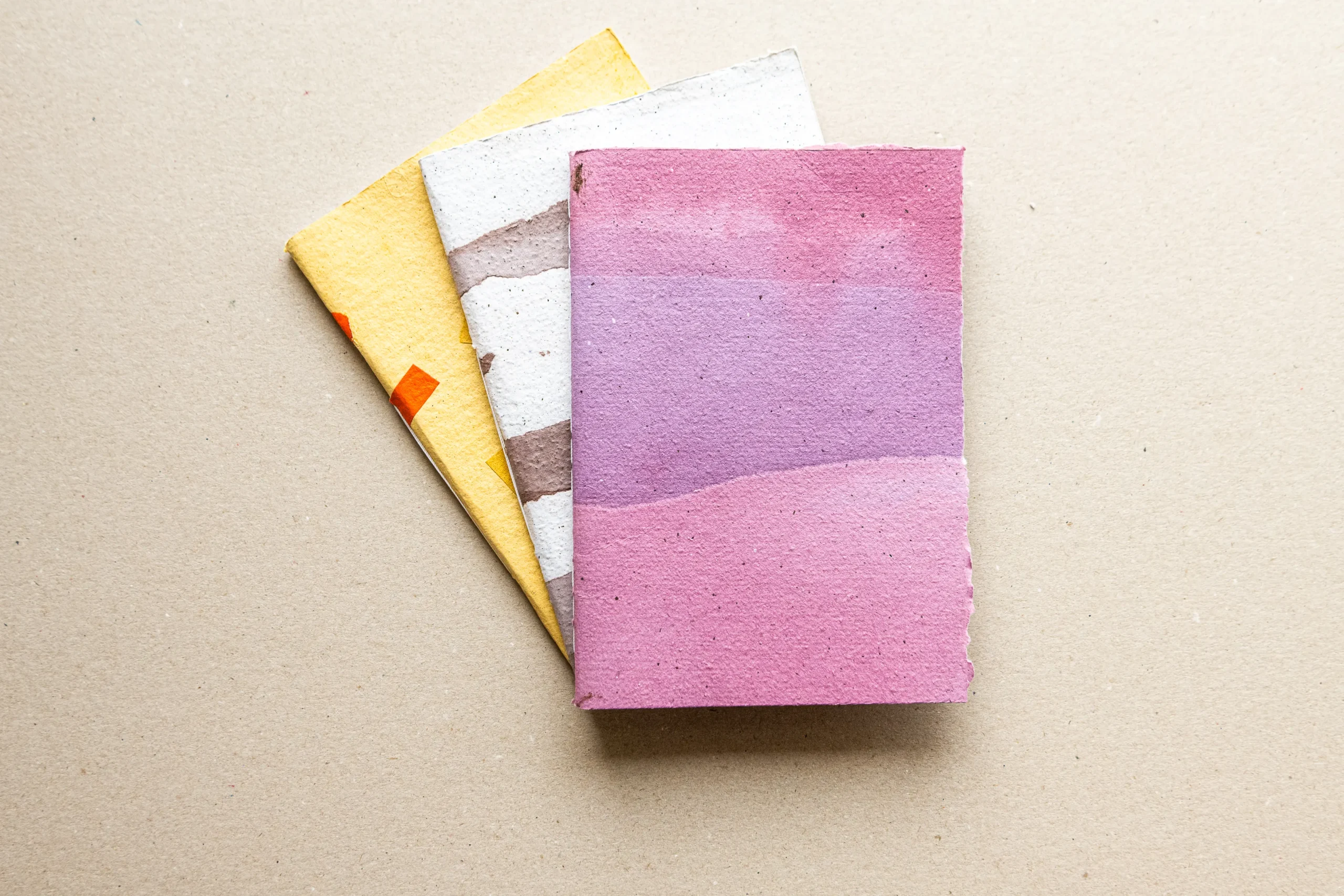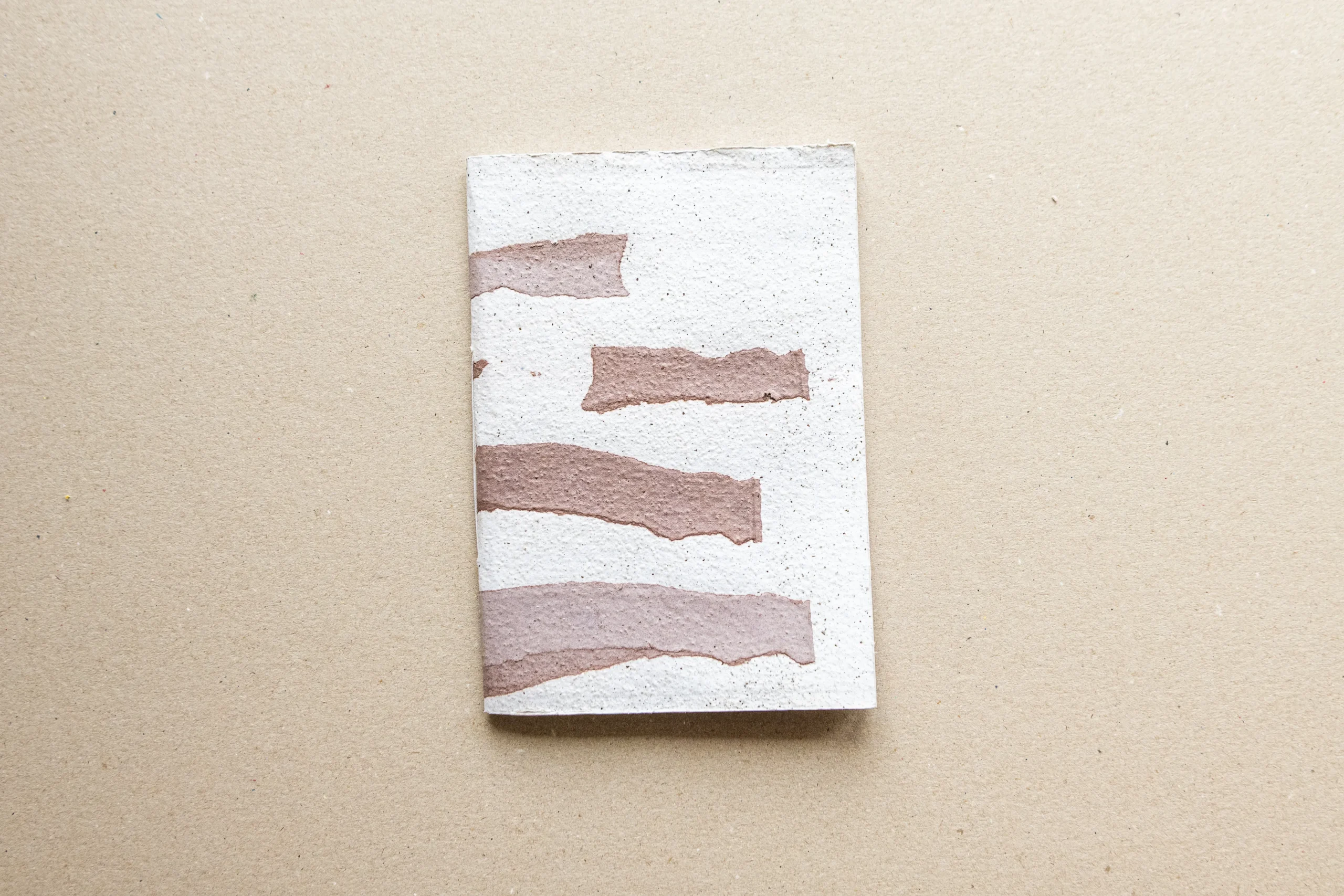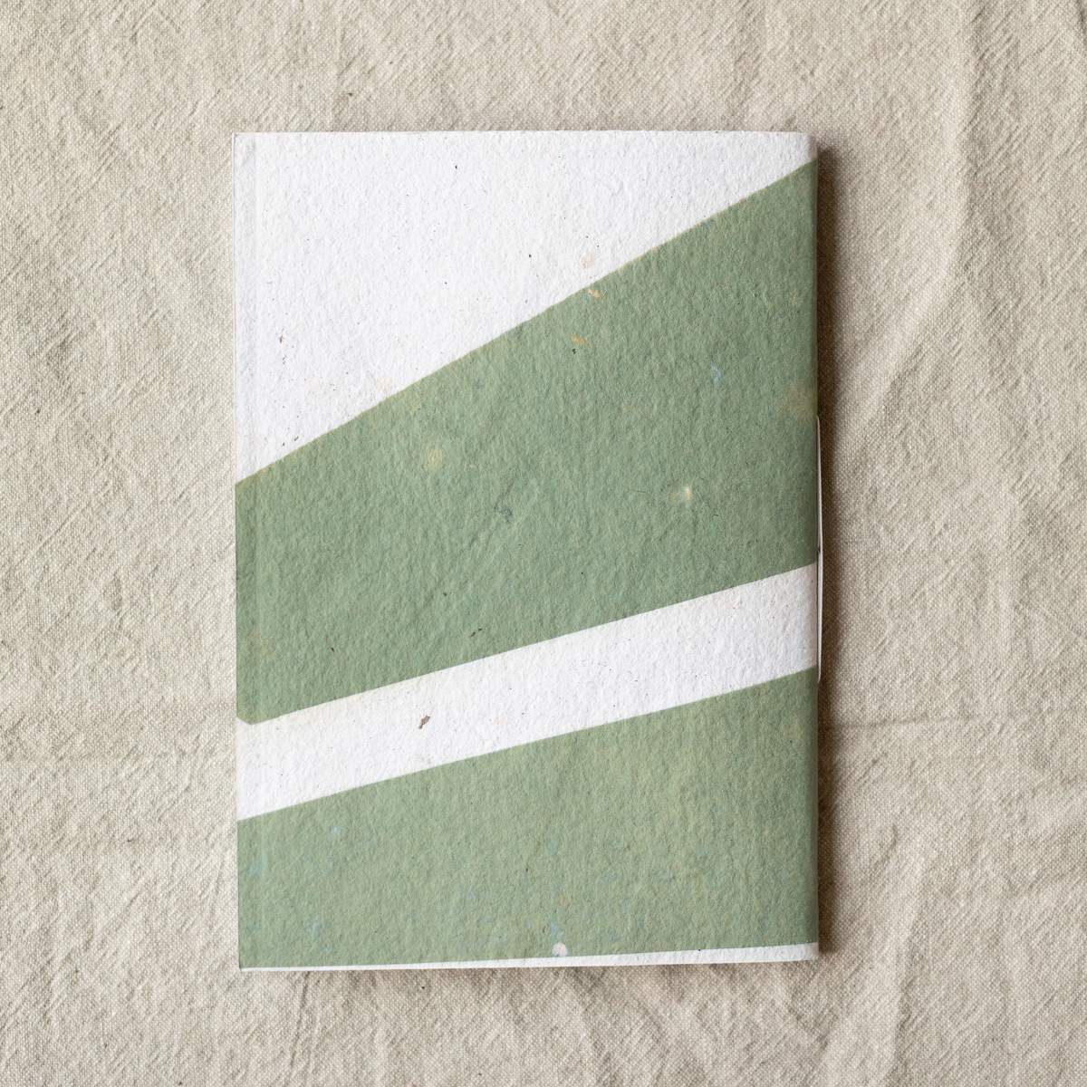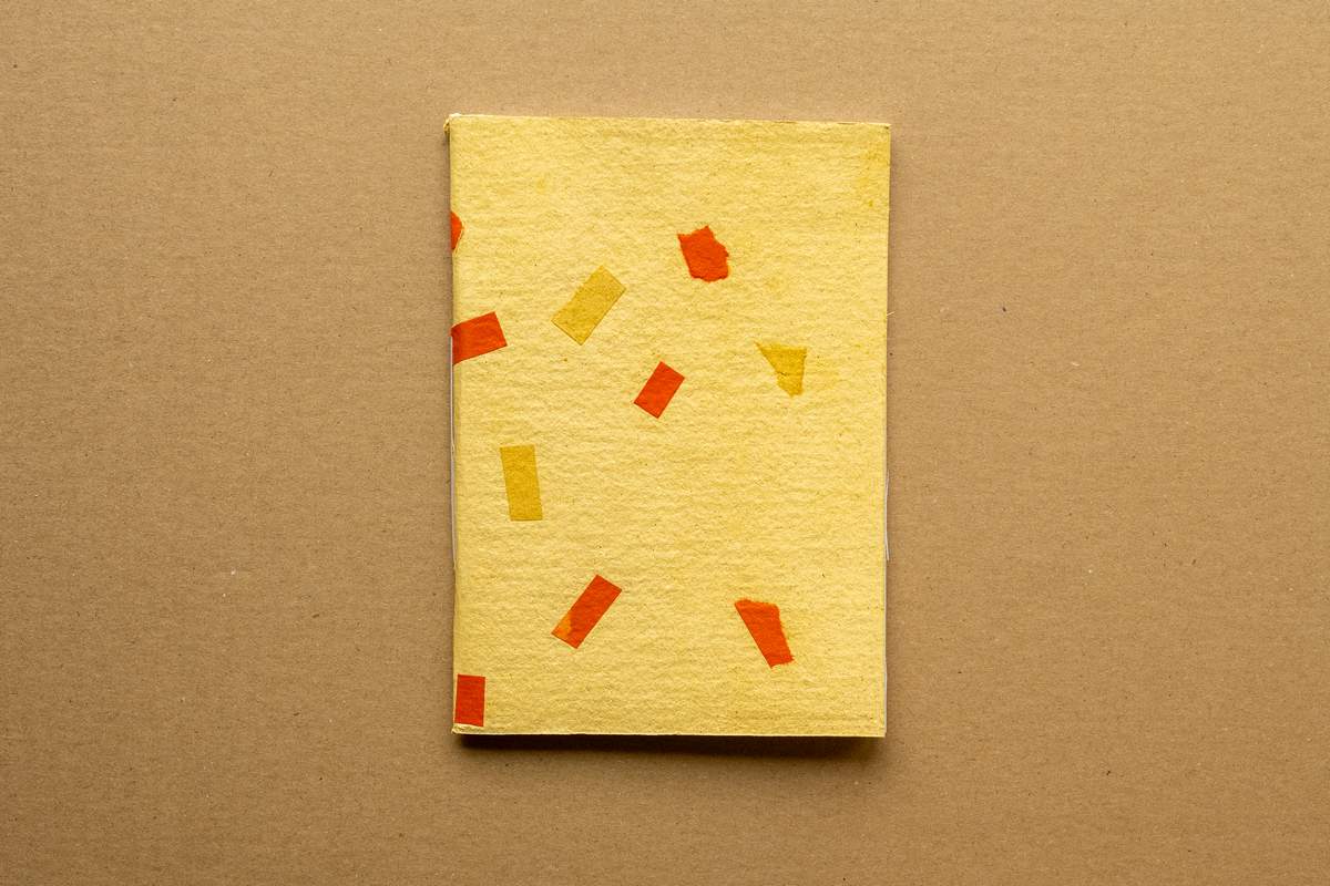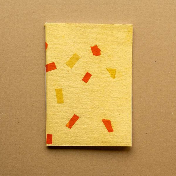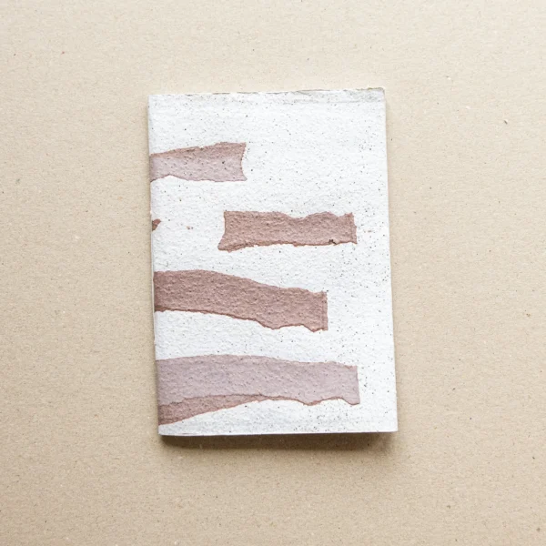 Kézzel készült, fűzött füzet geometrikus mintájú textúrás borítóval. Újrahasznosított papírból készül, határozott formavilággal és játékos struktúrával, ideális jegyzeteléshez és kreatív tervezéshez.