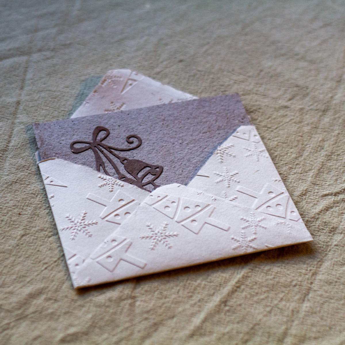 Ünnepi hangulatú, kézzel készült karácsonyi papírboríték különleges üzenetekhez. Merített papírból készül, természetes felülettel és meleg, meghitt megjelenéssel, amely méltó kísérője az ünnepi jókívánságoknak.