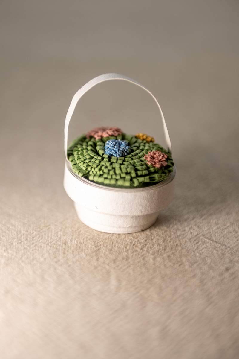 A kosárka virág azoknak szól, akik a kézműves papír finom részleteit és a természet ihlette formákat keresik tartós, újraértelmezett formában.
