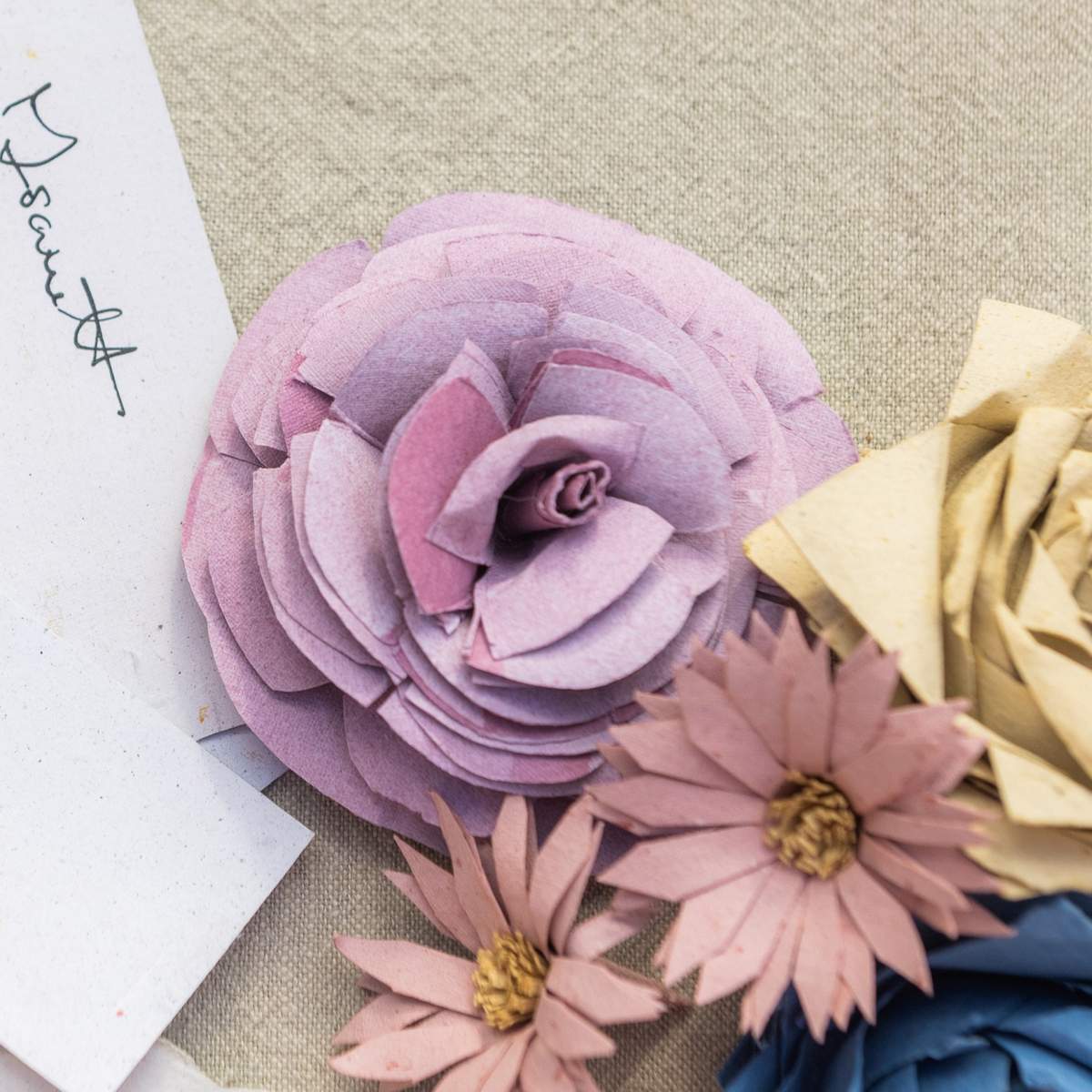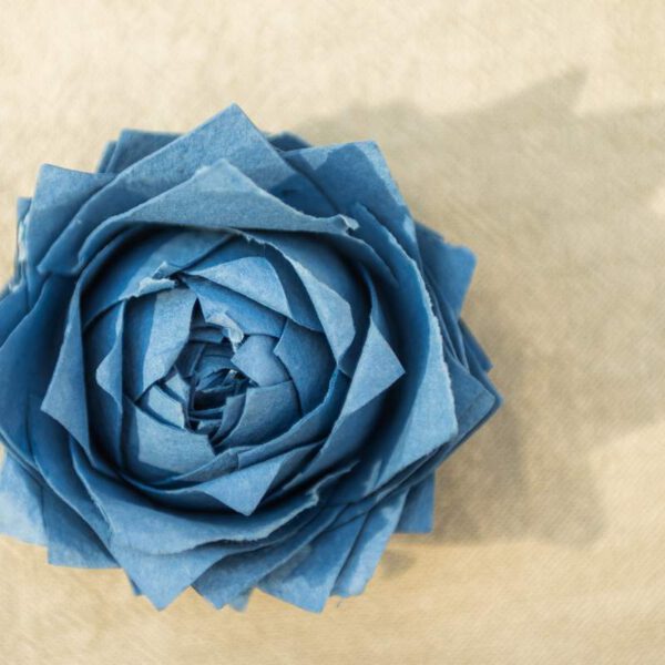 A papírrózsa letisztult, klasszikus formájával az időtlen virágmotívumot idézi. Kézzel készül, merített papírból, így minden darab egyedi: a szirmok finom rétegződése és a papír természetes textúrája adja meg karakterét.