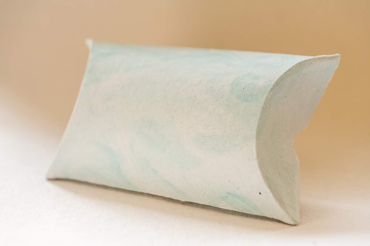 A doboz kézzel készül, újrahasznosított papírból, párnaformájú kialakítása pedig könnyed és mégis különleges csomagolási élményt nyújt. Tökéletes választás ékszerekhez, kártyákhoz, apró ajándékokhoz vagy ünnepi alkalmakra. Felülete jól kombinálható szalagokkal, papírvirágokkal vagy vágott dekorformákkal.