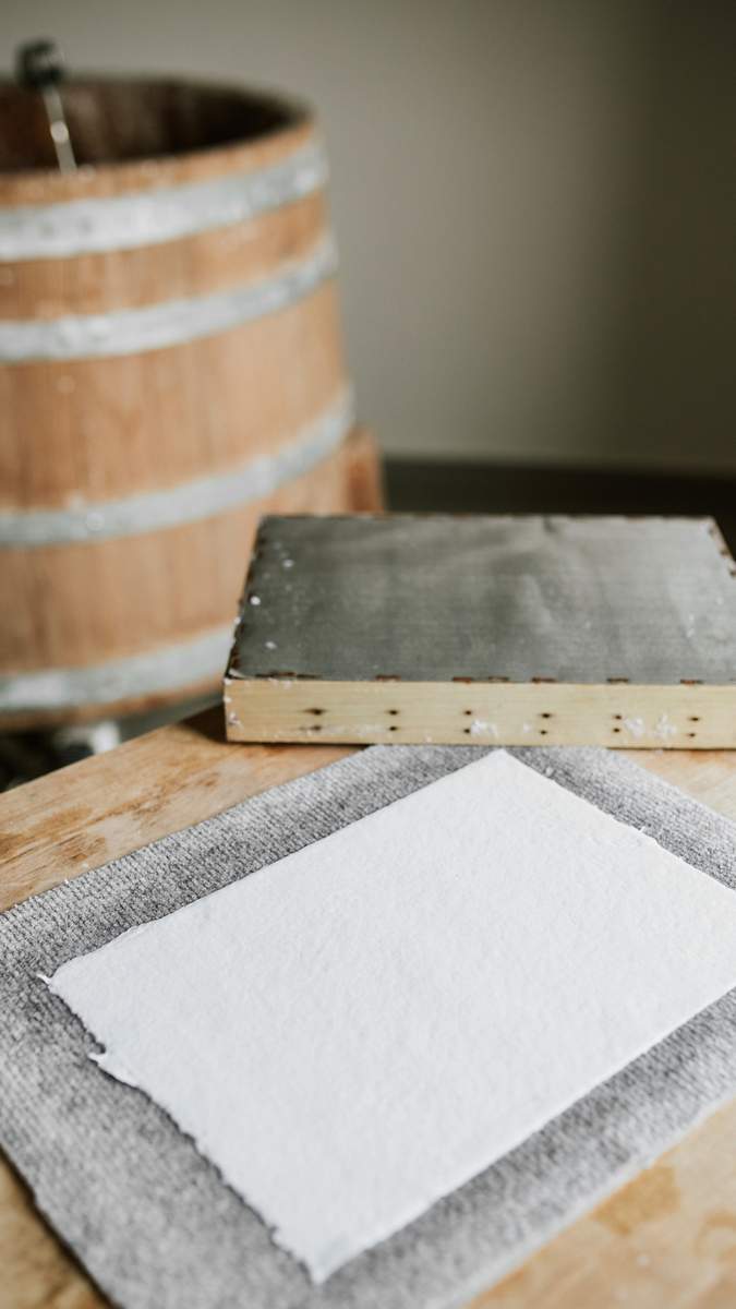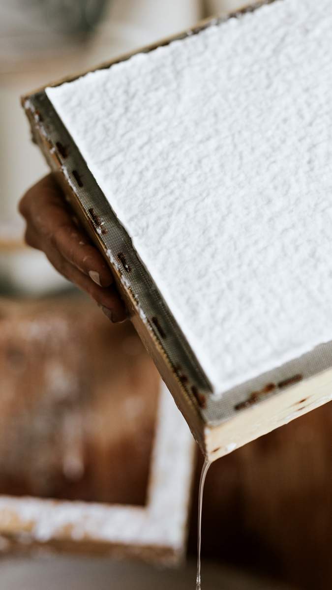 A papírpépből új, kézzel merített papírlapok készülnek, amelyekből meghívók, kártyák, jegyzetlapok vagy egyedi művészeti alkotások [...]